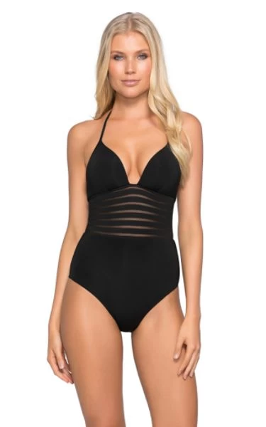 In a choice of vibrant chilli, ink, black or white, the Plunge One Piece