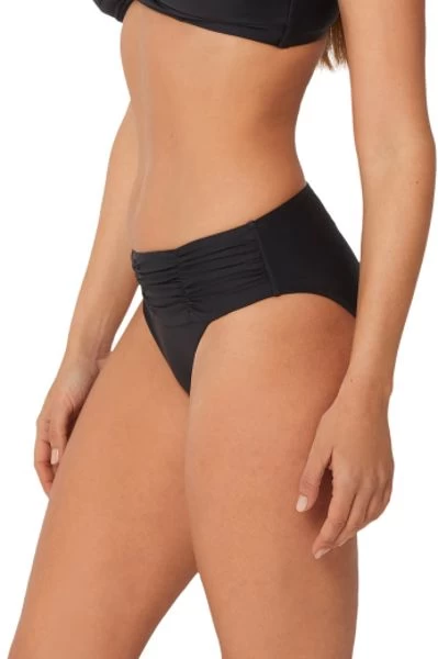 Features a flattering gathered panel on the front and offers slightly
