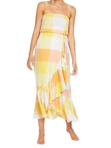 fresh lemon 100% cotton strapless maxi dress with wrap front,