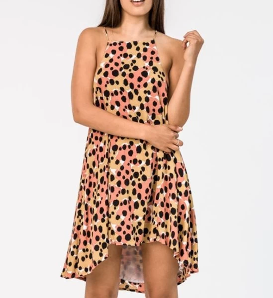 of fun in a really cool silhouette. A-line, it has a high neckline and a